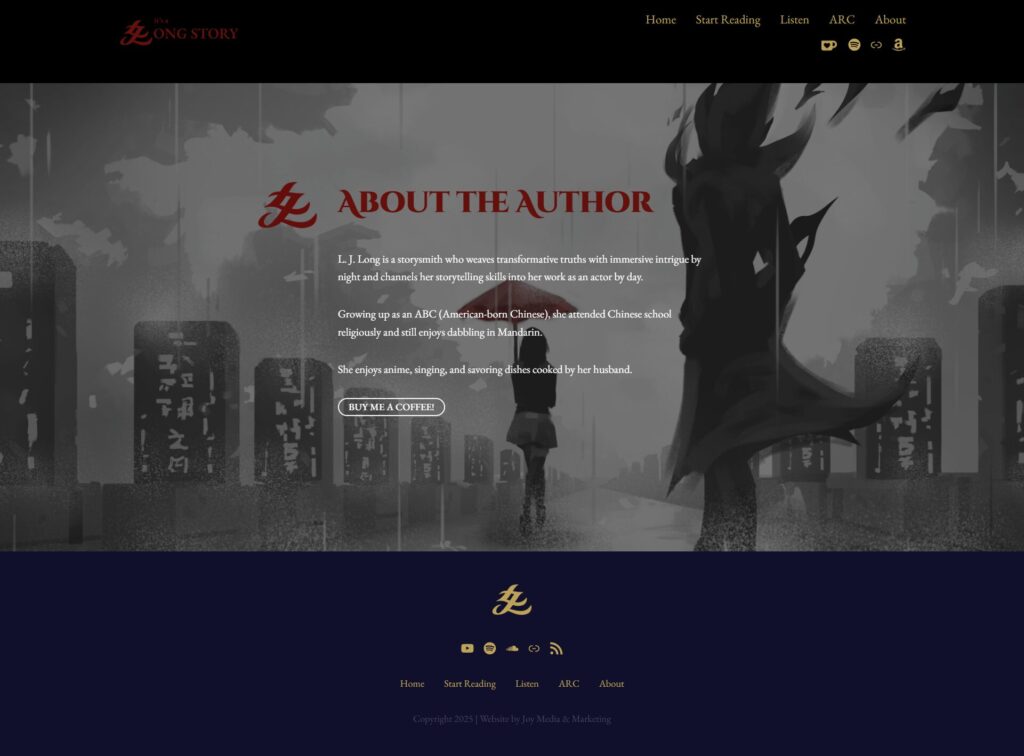 I was tasked with creating a logo that fuses fantasy and Asian culture, that included her initials in an artistic manner. I also had the opportunity to design and format her brand new author website!